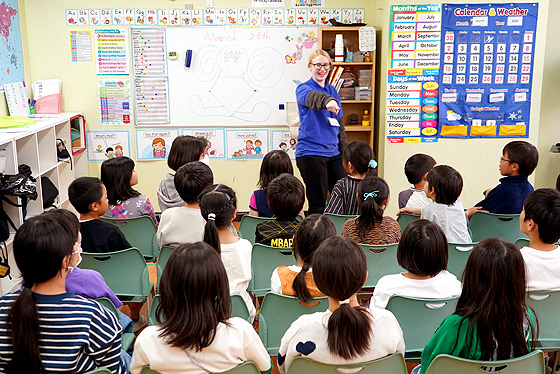 長時間にわたり英語環境で過ごすことで、楽しみながら自然に英語が身につきます。 無学年・多人数のクラスの中で社会性や協調性、コミュニケーション力を磨きながら、外国と日本の文化のそれぞれ良い部分を取り入れた人間育成を目指しています。